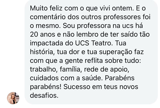 “Sou fonoaudióloga do Daniel Scola há mais de dez anos. No início trabalhamos no aprimoramento da voz para o jornalismo, mesmo já sendo ele referência de comunicador. Depois do câncer passamos à reabilitação vocal para vida e para o trabalho. Dedicação e empenho marcam sua trajetória. O resultado é a sua constante melhora! Uma dádiva, pois assim podemos ouvir a potência da voz e da mensagem desse gigante!”
